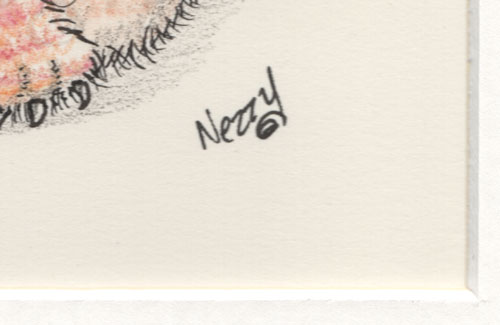 Personally signed by cartoonist Nezzy in pen, ink and watercolour.