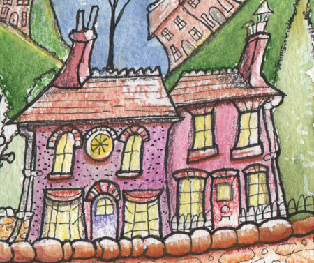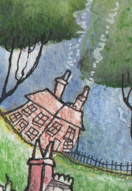 Another ‘cartoony’ style pen, ink and watercolour illustration in my seaside collection. ‘Seaside Village’ was Inspired during a recent holiday to Cornwall.