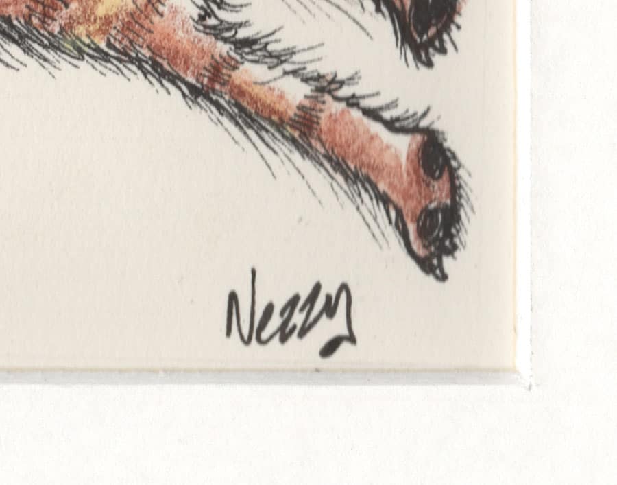 Personally signed by cartoonist Nezzy in pen, ink and watercolour.
