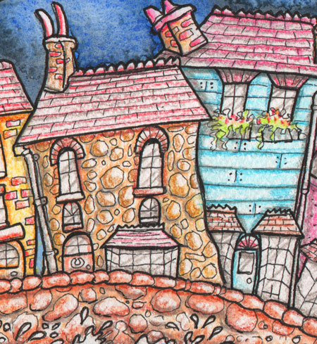 Wonky Harbour – Original Pen, Ink & Watercolour by Rob Nesbitt