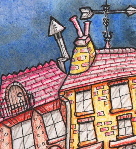 After a weeks holiday in cornwall visiting umpteen quaint cornish harbours, I noticed that not many buildings around the harbours was straight. In fact most were on the ‘wonk’, which suits my style of drawing and painting. I have a theory that back when harbours were built most builders drank beer – as water was generally. not fit to drink. Houses built by drunken builders – totally wonky!!! Original design by Rob Nesbitt in pen, ink and watercolour. There will also be prints available of this design soon but this is the ‘one off’ original artwork. The cartoon is personally signed by the artist and in presented in a mount (matt) and backing board.